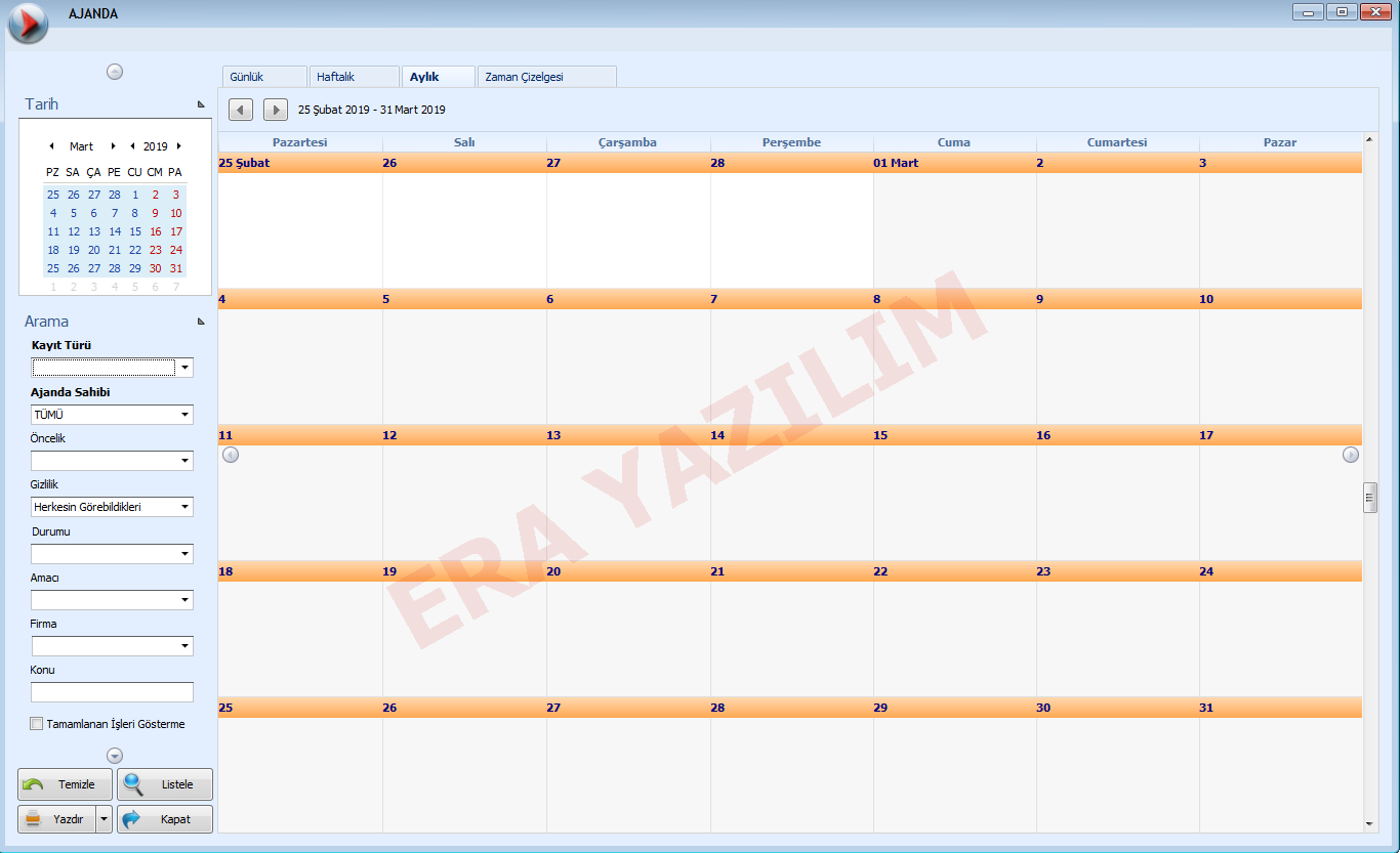 CRM takvimi ( Ajanda ) etkin raporlama ve hatırlatma araçlarınıda içerisinde barındırır.